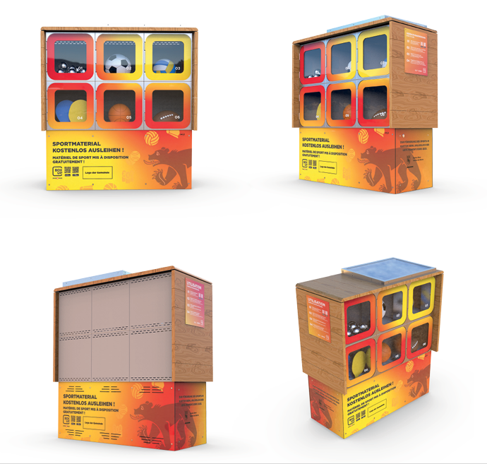 Der Kanton Bern will die sportlichen Aktivitäten und das Bewegungsverhalten der Berner Bevölkerung weiter fördern. Deshalb beschafft das Kompetenzzentrum Sport zehn Ausleihstationen für kostenlos nutzbares Sportmaterial. Das Sportmaterial wird in Schliessfächern, die fest mit dem Boden verankert sind und mit Solarenergie betrieben werden, zur freien Nutzung zur Verfügung gestellt. Mittels App können die Schliessfächer geöffnet und die Sport- und Spielgeräte ausgeliehen und genutzt werden. Die Nutzung des Sportmaterials ist für die Bevölkerung kostenlos und bietet ihr so die Möglichkeit, flexibel und ungebunden Sport zu treiben.
