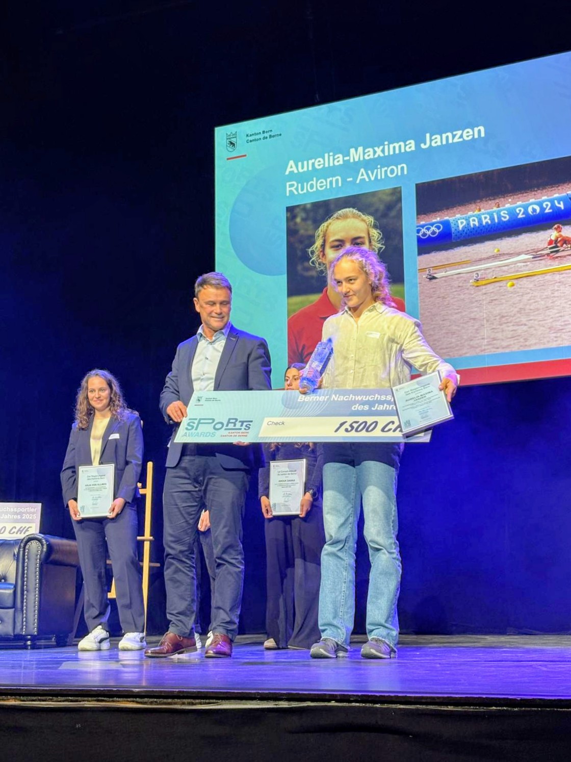 Berner Athletinnen und Athleten erbringen auf internationaler Ebene jedes Jahr Topresultate in verschiedenen Sportarten und Disziplinen. Der Regierungsrat des Kantons Bern würdigt diese Leistungen jeweils im Herbst an den «Sports Awards Kanton Bern». In diesem Jahr wurde die Ehrung zum ersten Mal im Theater National in Bern durchgeführt. Die Auszeichnung als «Berner Nachwuchssportlerin des Jahres 2025» erhielt die U23 Welt- und Europameisterin im Skiff, Aurelia-Maxima Janzen.