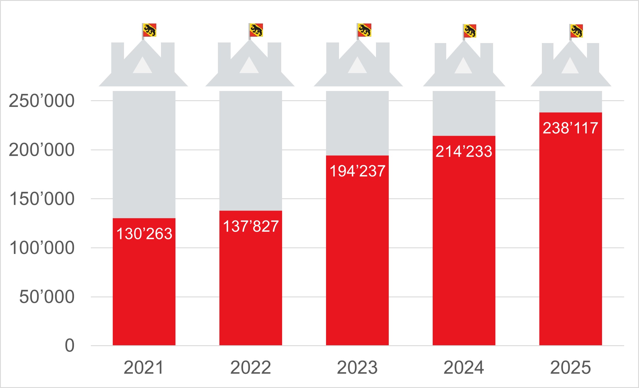 Erneut konnten gegenüber dem Vorjahr rund 10% mehr Belegungstage auf dem Waffenplatz Bern verzeichnet werden. Deutlich sichtbar ist der Unterschied zu den von COVID-19 geprägten Jahren 2021 und 2022.