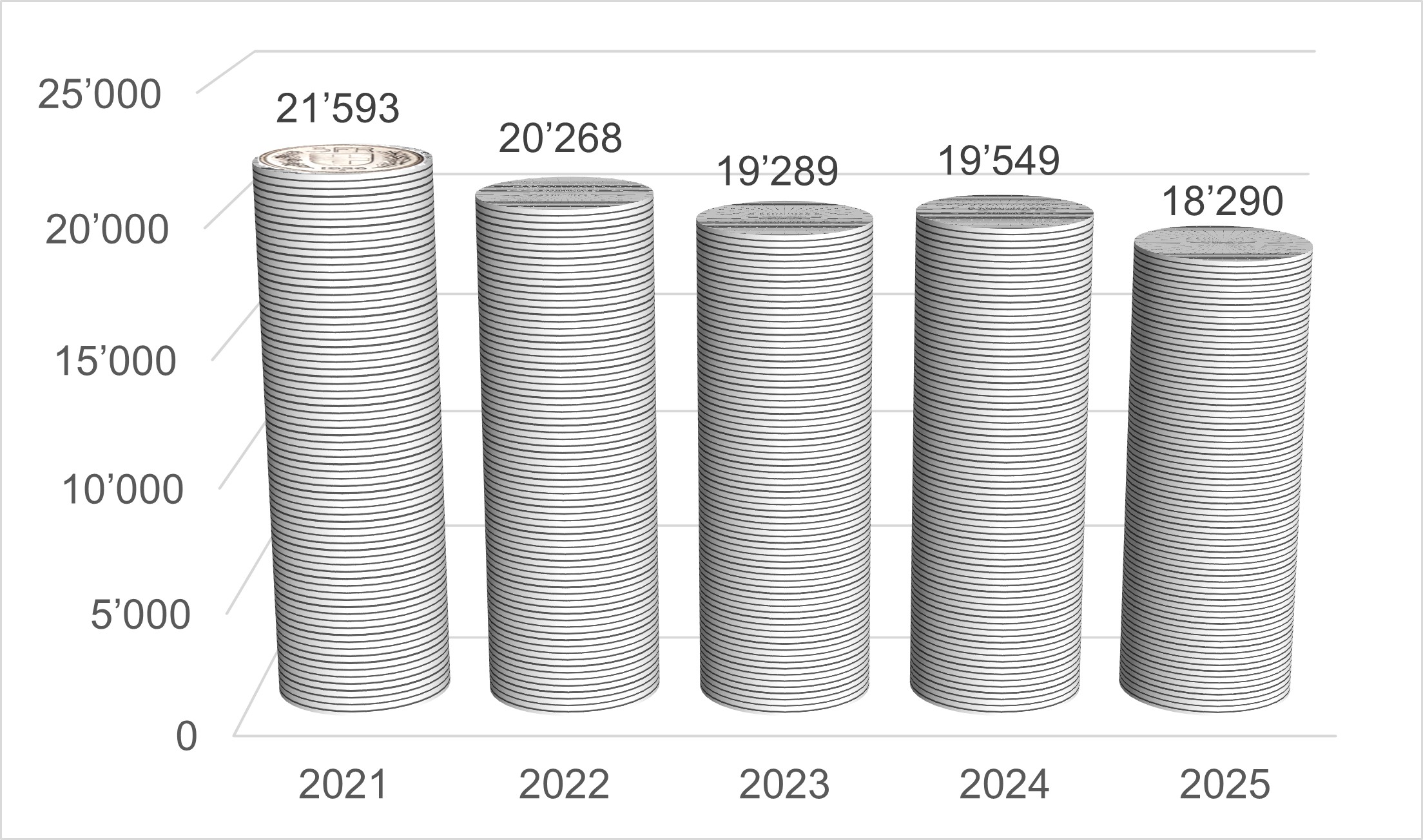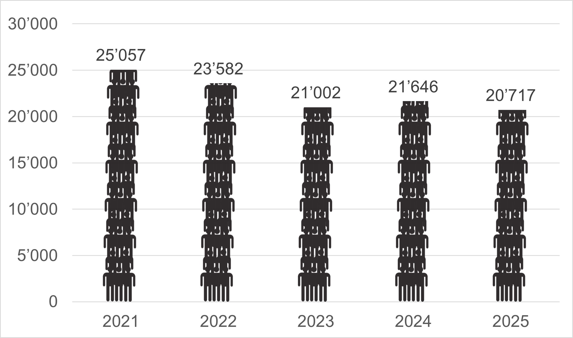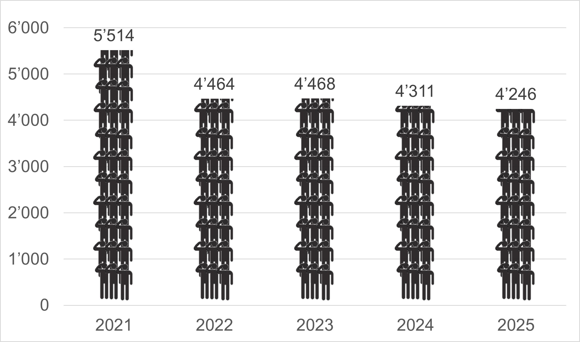 Par rapport à l'année précédente, une nouvelle hausse d'environ 10 % du nombre de jours d'occupation de la place d'armes a été enregistrée en 2025. La différence avec les années 2020 à 2022, marquées par la pandémie de COVID-19, est bien visible.